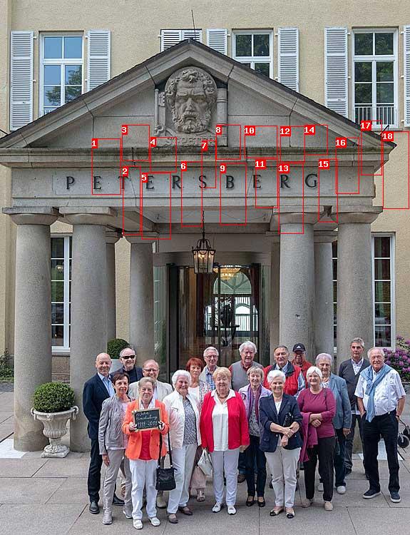Zunächst besuchte man gemeinsam das Steigenberger Grandhotel auf dem Petersberg, ließ sich dort von Brigitte Müller das Gelände und die Gebäude mit ihrer Geschichte zeigen und erklären, genoss bei Kaffee und Kuchen die schöne Aussicht und traf sich zum Abschluss im Weinhaus Lichtenberg.