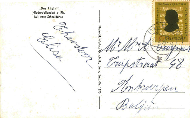 Post am 27.8.1956 nach Antwerpen/Belgien.Rhein-Bild-Verlag, Bonn