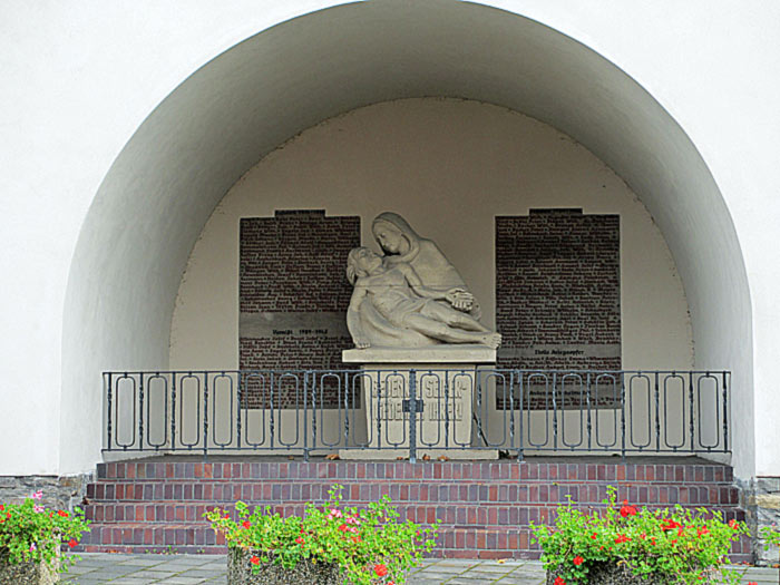 10.10.1952 Oberdollendorf. Eine Statue des in Rhöndorf lebenden Bildhauers Edmund Wessling, „Sterbender Krieger auf dem Schoße der Mutter“, ist vom Ort Oberdollendorf erworben worden. Sie soll in Lebensgröße hergestellt werden und als Kriegerehrenmal in einer Nische an der Pfarrkirche aufgestellt werden. Ein Gitter soll die hier geplante schlichte Kriegergedächtnisstätte vom übrigen Kirchenteil abgrenzen. Auf den Tafeln, die angebracht werden sollen, werden die Namen der 140 Gefallenen stehen.
