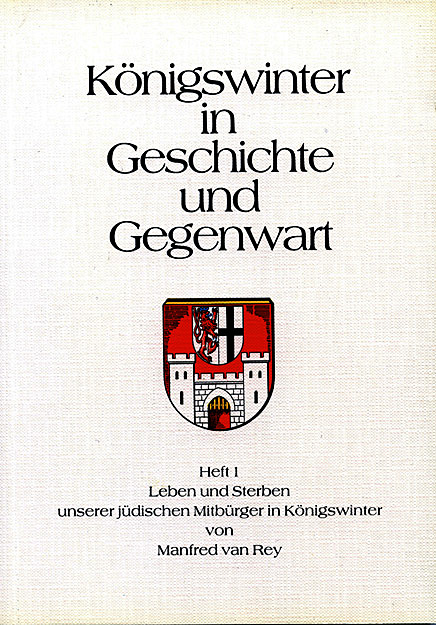 Königswinter in Geschichte und Gegenwart - Heft 1: Leben und Sterben unserer jüdischen Mitbürger in Königswinter von Manfred van Rey Herausgeber: Stadt Königswinter Der Stadtdirektor 200 Seiten - illustr. Königswinter 1985 Erhältlich im Brückenhofmuseum des Heimatvereins Oberdollendorf und Römlinghoven, Königswinter-Oberdollendorf, Bachstr. 93. Inhaltsverzeichnis: Einleitung Von den Kreuzzügen bis zur Großen Pest In kurkölnischer und bergischer Zeit Zeit der Emanzipation: Von der Französischen Revolution bis zum Kaiserreich Vom Herzogtum Nassau zum Großherzogtum Berg Die ersten Jahrzehnte unter preußischer Herrschaft Von der Annahme fester Familiennamen bis zum Bau der Synagoge in Oberdollendorf 30 Zeit der Assimilation: Im Kaiserreich Streit um den jüdischen Friedhof in Königswinter Die jüdischen Bürger im Erwerbsleben Ein neuer Antisemitismus entsteht In der Weimarer Republik Zeit des Untergangs: Unter nationalsozialistischer Gewaltherrschaft Von der „Machtergreifung" zum Pogrom vom November 1938 Die „Reichskristallnacht" und ihre Folgen Von der Zerstörung der Synagogen zur „Endlösung der Judenfrage' Anmerkungen Quellen und Literaturverzeichnis Namenindex der jüdischen Bürger