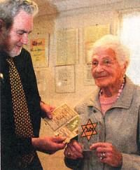 Ruth Moses zeigt und erläutert Museumsleiter Vreden ihre Kennkarte von 1939