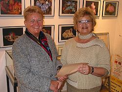 Nach 24 Ausstellungstagen: Als 2.888. BesucherIn erhielt Helga Horneffer (links) von Hildegard Neuhaus im Namen des Brückenhofteams einen Gutschein für den Museumsshop. Zusammen mit 16 anderen Sportlern kam sie aus Königswinter-Heisterbacherrott. Dr. Manfred und seine Frau Doris hatten die Besichtigung des Brückenhofes mit anschließender Einkehr in eines der schönen Weinlokale des Ortes als interessanten und gemütlichen Abschluss der Woche bestens geplant.