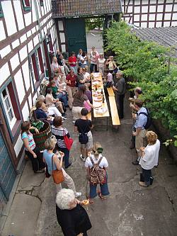 Mit 32 Frauen der Katholischen Frauengemeinschaft St. Mariae Heimsuchung Eudenbach (KFD) kam Annelore Broscheid (Bild 3, 3.v.r.) am 19. Oktober 2005 aus dem „fernen Osten“ Königswinters, dem Oberhau. Sie waren nach der Führung durch die Herren Schuchert, Schumacher, Skorczyk und Vreden begeistert von der hervorragenden Sonderausstellung und dem mit viel Liebe erweiterten Museum. Annelore Broscheid und Lothar Vreden freuten sich auch als Mitglieder des Ordenskapitels ”Wider den quälenden Durst” über ein Wiedersehen.