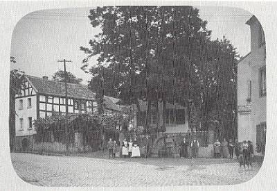 Als wir am Morgen den Keller verlassen konnten, bot sich ein Bild der Verwüstung. Vom Brunnen war nichts mehr heil. Stein- und Basaltbrocken lagen in weitem Umkreis verstreut. Der hinter dem Brunnen stehende alte Lindenbaum mit seinen fünf Stämmen war schwer in Mitleidenschaft gezogen worden. Er hatte fast den gesamten Splittersegen aufgenommen und dadurch unser Wohnhaus vor größeren Schäden bewahrt. Die Umgebung war mit abgerissenen Ästen übersät, und aus der Zuleitung schoß Wasser. Beim nächsten Sturm brach einer der Stämme ab. Zwei weitere mußten wenig später gefällt werden, und schließlich wurde der ganze Baum aus Sicherheitsgründen entfernt. Der Brunnen wurde leider nicht mehr aufgebaut. An dieser Stelle verläuft jetzt der Bürgersteig der Bergstraße.