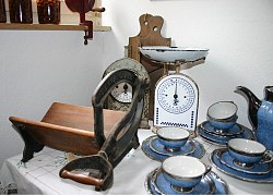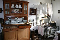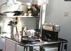 Auch Sie werden sich in unsere kleine Küche sofort verlieben. Die Waffeleisen und Bügeleisen zeugen noch von der großen Mühe, mit der die Arbeiten in der Küche verrichtet werden mussten. „Aal Botze“ hängen über einem alten Herd zum Trocknen, als hätte die Großmutter gerade den Raum verlassen.