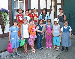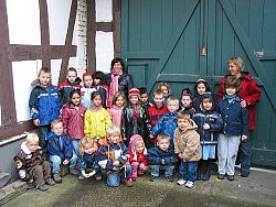 In der letzten Oktoberwoche 2005 besuchte der katholische Kindergarten St. Laurentius Oberdollendorf mit fast 70 Kindern und 6 Betreuerinnen das Brückenhofmuseum. Die Sonderausstellung war auch schon für die Kleinsten interessant. Schwerpunkt bildeten jedoch Teile der Dauerausstellung. <-- Die „Hamstergruppe“ mit Monika Zmudowski und Angelika Simon.