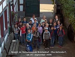 Am 20. 9.05 kamen die Schülerinnen und Schüler mit ihrer Klassenlehrerin Ursula Hanke und ihrer Schulleiterin Elisabeth Barth nach einer umfangreichen und anstrengenden Wanderung in den Brückenhof. Nach einer beeindruckenden Führung durch Dieter Mechlinski durch das Museum gingen die Kinder zurück in ihr Quartier, in den Malteserhof in Römlinghoven, den die Gebrüder-Grimm-Schule Rheinbreitbach regelmäßig besucht.