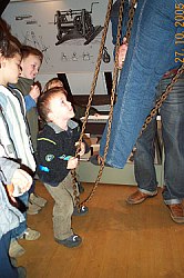 Die vielseitige Führung durch das Brückenhofmuseum war für die Schüler der Longenburgschule Niederdollendorf am Freitagnachmittag, 18. November 2005, eine spannende Sache. Ein Teil der Betreuungsgruppe war im Rahmen der Offenen Ganztagsschule mit ihren Betreuerinnen Paula Langer und Uschi Wittern in die Bachstraße gekommen. Eine Gaudi war es, Frau Wittern mit dem Flaschenzug nach oben zu ziehen. Lothar Vreden freute sich, dass er Kinder aus seiner ehemaligen Grundschule, an der er fast 30 Jahre Schulleiter war, begrüßen konnte.
