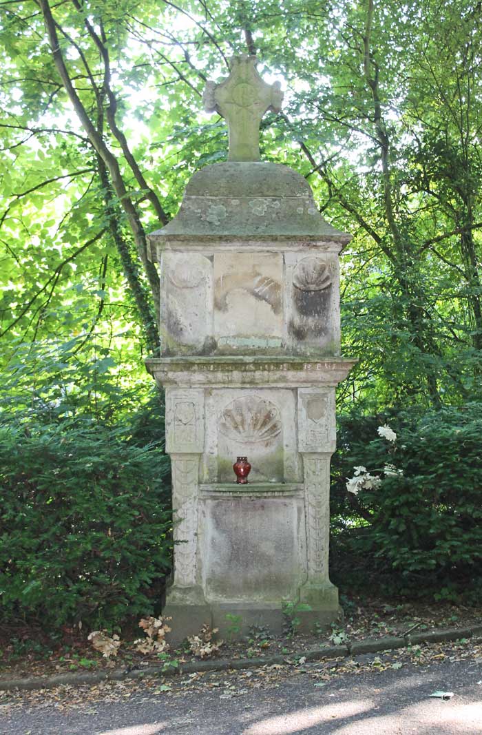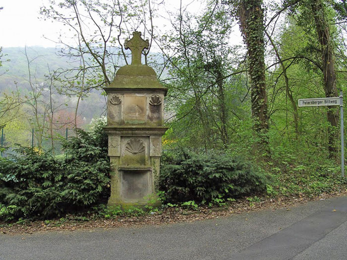 Die 1. Station des Petersberger Bittwegs steht am Ortsausgang von Königswinter am Abzweig des Petersberger Bittwegs von der Straße Am Lessing.